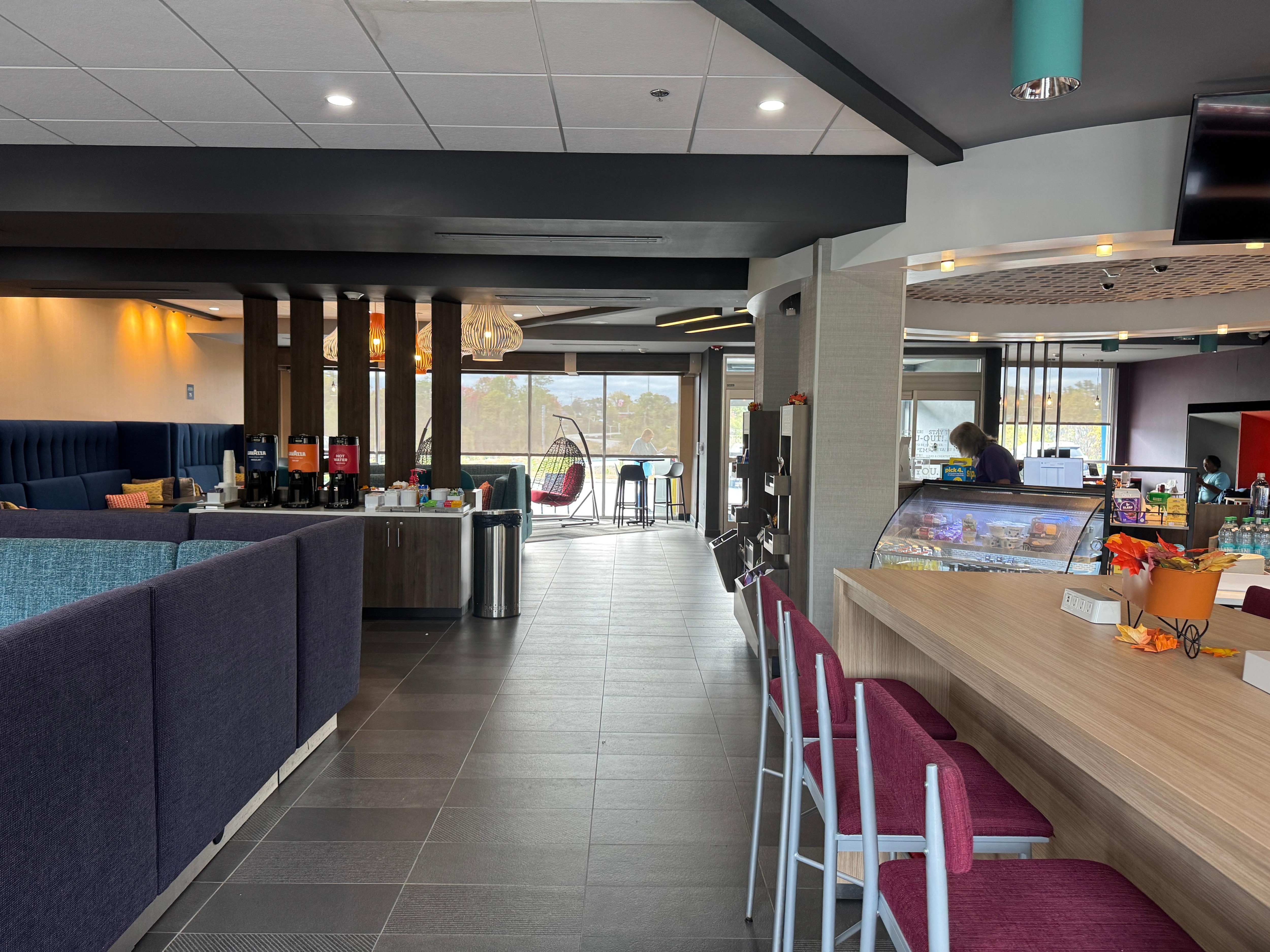 Travelers stay energized with a workout in the 24-hour gym or refuel at the snack bar, while staff stand ready with local recommendations
