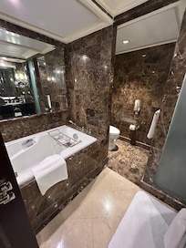 Travelers can relax in the spa tub before savoring international cuisine for breakfast or dinner, with three on-site restaurants just steps away.