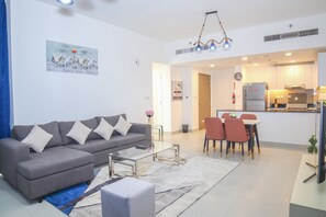Dubai South Residential District, a neighborhood in Dubai, is home to this apartment. Travelers who have shopping on the agenda can visit Mall of the Emirates and Ibn Battuta Mall, while those looking for another kind of activity may want to check out Ski Dubai. Looking to enjoy an event or a game while in town? See what's happening at Dubai Autodrome or Hamdan Sports Complex.