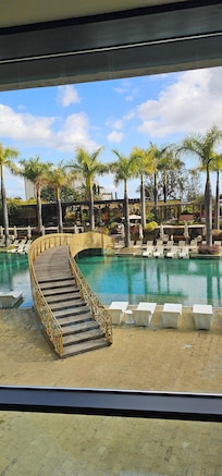 Very pleasant outdoor pool . Helpful staff .