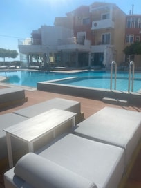 Heliotrope Hotels welcomes visitors to Mykonos with a complimentary breakfast buffet each morning. Two restaurants serve international cuisine throughout the day, while the poolside bar offers refreshing cocktails. Guests find additional relaxation in the hotel's garden.