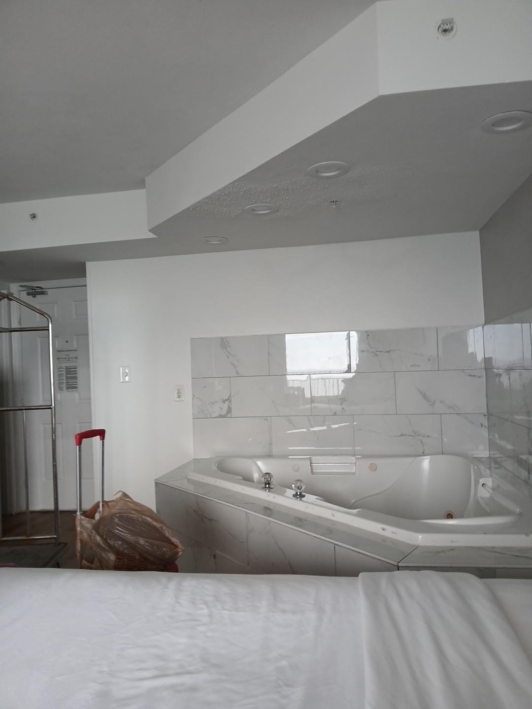 Room cleanliness was was ok. Bed very comfortable, friendly staff. Toni made sure I had everything I needed. She was very polite on the phone when I would call her. Cass was too. Hot tub is very nice. I was able to park in parking garage right by the elevator. Toni and Cass offered me coffee and the water with lemon 🍋 was very refreshing.
