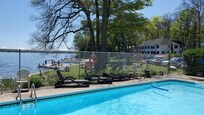 Lakefront resort with an outdoor pool and a restaurant