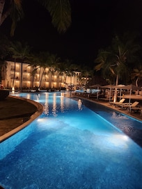Travelers enjoy the perfect vacation balance at this tropical paradise, where poolside amenities, gourmet dining, and ocean views create an ideal retreat