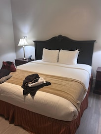 Room was old and dirty, not as pictured. Small bathroom had no counters to put your stuff. Sink was falling off pedestal, bathtub fixtures were old and dirty, low water pressure. Walls and floors were dirty. Pillows were a joke, look like sofa pillow cushions. Outdated lamp, no usb ports. Hallways had a bad odor too. We were given room on first floor all the way in the back, away from main hotel. Stayed in nicer motel rooms than this one. Will not stay here again.