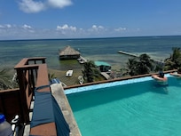 Beachfront paradise on Ambergris Caye where travelers can lounge by two outdoor pools or enjoy meals at the on-site restaurant just steps from their rooms