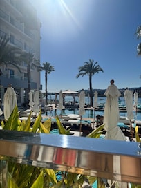 San Antonio Bay's vibrant energy meets upscale comfort at Amàre Beach Hotel Ibiza - Adults Recommended. Savor the beachfront location, unwind with a massage at the spa, and enjoy international cuisine at one of three restaurants. With two outdoor pools, sun loungers on hand, and helpful staff available to assist you throughout your stay.
