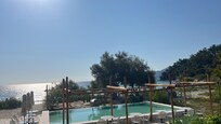 Makryammos Bungalows offers a stunning beachfront setting with Mediterranean cuisine. Guests can relax at the poolside bar, enjoy the private beach with loungers and volleyball, access massage services, and explore nearby tours. A playground is available for families.