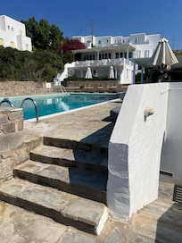 Akrotiri Hotel offers a tranquil retreat near the Port of Parikia, complete with a garden and outdoor pool. Treat yourself to spa services, enjoy Greek cuisine at Main Restaurant with ocean views, and connect via in-room WiFi; guests rave about the helpful staff.