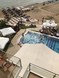 On beach with seasonal outdoor pool for sandy fun near Loutra Killinis Roman Baths