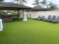 An outdoor pool, a children's pool, and a hot tub are on site. Other recreational amenities include a 24-hour fitness center.