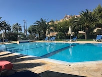 Along with a bar/lounge, this smoke-free aparthotel has a snack bar/deli and a seasonal outdoor pool. Free WiFi in public areas and free self parking are also provided. Other amenities include a children's pool, concierge services, and laundry facilities. Each apartment features a furnished balcony and a kitchenette with an oven, a stovetop, and a microwave. Added amenities include a flat-screen TV, a minibar, and a separate tub and shower.