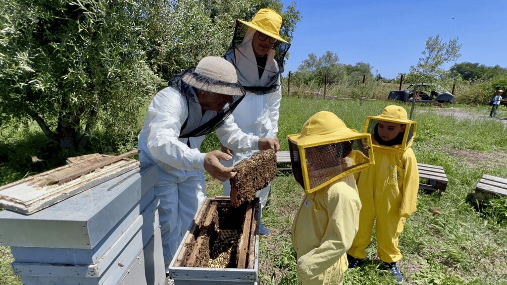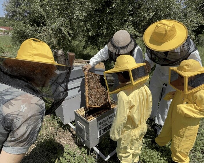 You will continue with a guided tour of the educational apiary: you will wear protective gear and safely observe the tireless work of the bees, discovering their vital role in the environment.