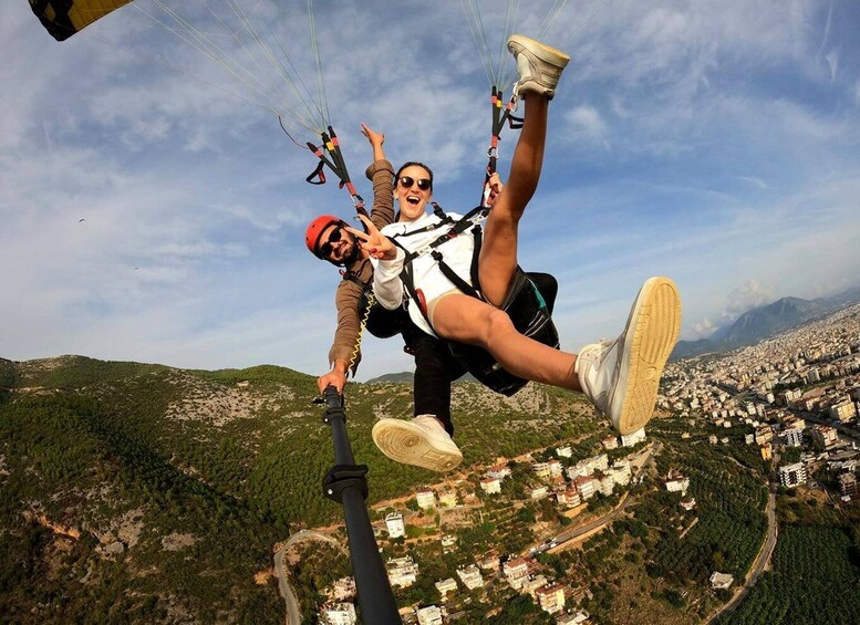 Una vez que llegue al lugar de despegue, tendrá una sesión introductoria detallada con los pilotos. Los pilotos totalmente certificados y experimentados se encargan de explicarte todo lo que necesitas saber. También le proporcionarán el equipo de seguridad necesario y lo prepararán para el vuelo. Cuando estés listo, comienza a correr hacia el final del acantilado con tu piloto y déjate llevar por la experiencia de volar. ¡Sin darte cuenta, estarás en el aire! Disfrute de grandes dosis de adrenalina durante los primeros momentos del vuelo, ¡y asegúrese de mantener los ojos abiertos para presenciar las impresionantes vistas! En caso de que te preocupe perderte un momento, ¡tenemos una gran noticia! El piloto tendrá una cámara para tomar fotos de ti y de las increíbles vistas. El vuelo dura aproximadamente 15 minutos y está sujeto a las condiciones meteorológicas. El aterrizaje se lleva a cabo en la bahía de Cleopatra, donde un equipo espera para garantizar un proceso seguro y sin problemas. Cuando aterrice, puede obtener una vista previa de las fotos del piloto y comprarlas a un costo adicional. Esta increíble experiencia termina cuando regresas a tu hotel en Alanya.