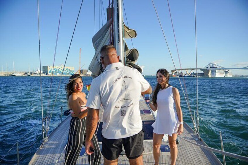 Crucero en yate de lujo por Barcelona – Día o puesta de sol, barra libre y aperitivos
