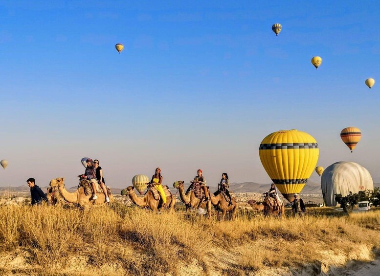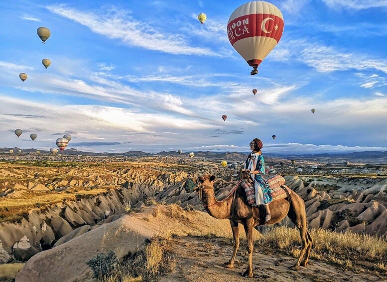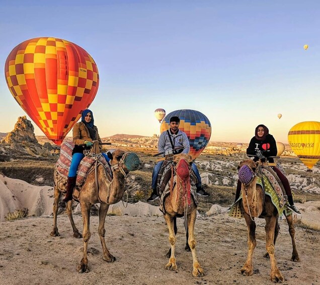 The views will be magical as the camel will be passing over the Cappadocia’s most famous valleys. Observe and admire peculiar rock formations that reflect the colours of the sun and create an outstanding setting. Fairy chimneys, ancient villages with carved houses into cliffs and many other locations will impress you during your Camel Ride. During the 1-hour ride there are photo stops where you can take some panoramic and breath taking photos.