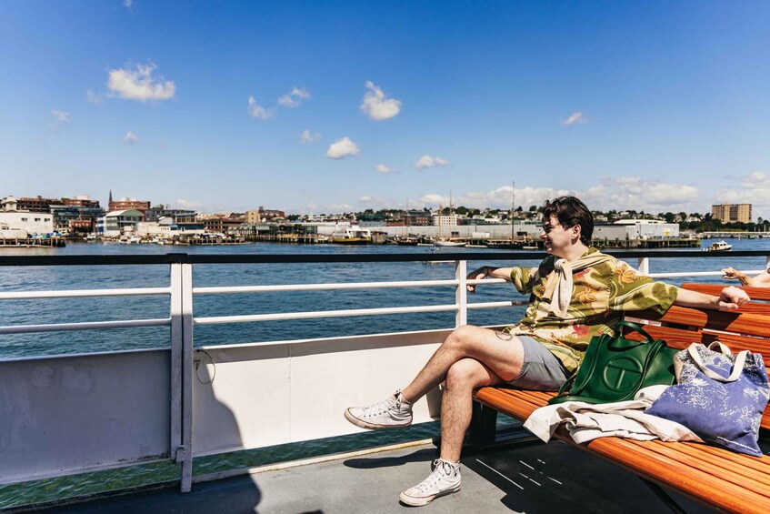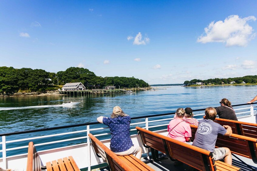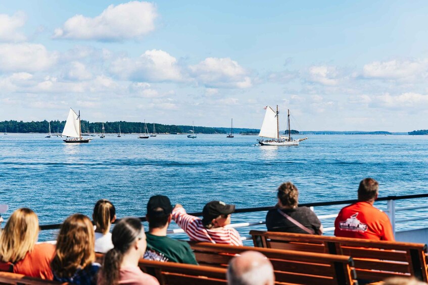 Siéntese y relájese mientras navega por la serena bahía de Casco en Portland, Maine. Sumérjase en la rica historia de Portland y vea los cuatro faros icónicos, las vistas del puerto de Portland y la pintoresca vía fluvial Diamond Pass.